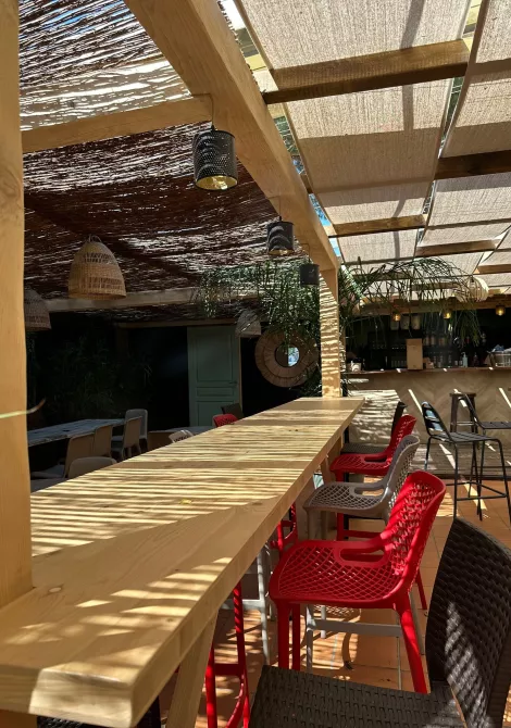 Au fil de la journée, on s’y retrouve autour d’un café ou d’un apéro entre amis, on savoure un déjeuner maison en terrasse, ou on profite d’un concert dans une ambiance détendue. Le bar à cocktails est ouvert tous les jours dès 7h, et le restaurant vous accueille le midi de 12h à 15h, pour une pause gourmande à l’ombre des parasols.